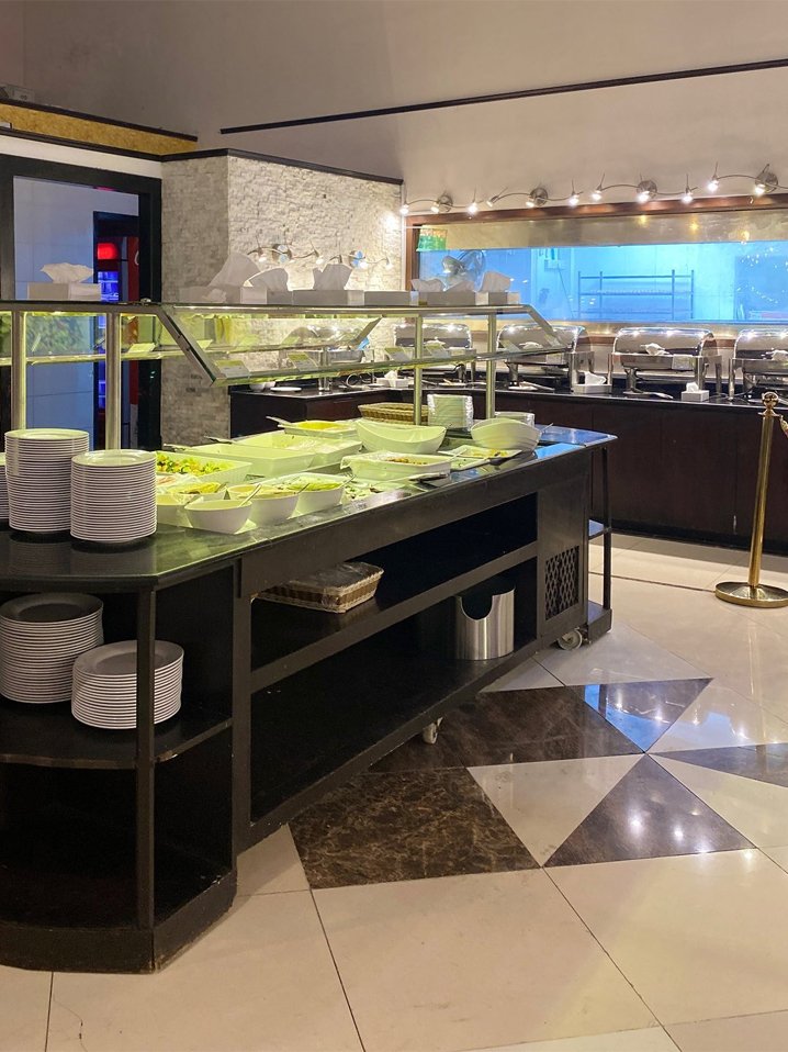 All-you-can-eat style with a wide variety of grilled meats, curries, rice dishes, salads, and desserts.