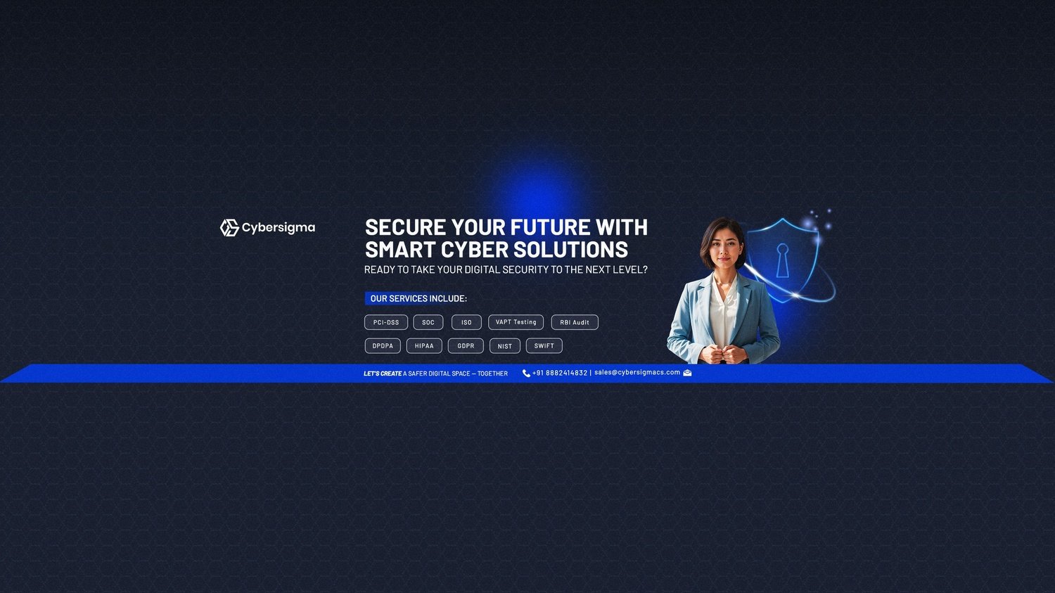 CyberSigma is the best cybersecurity service provider in the world, offering a full range of solutions to help businesses protect their data and ensure compliance. Our services include PCI DSS Certification, PCI DSS Level 1 Certification, GRC Tool, SOC 1 Compliance, SOC 2 Compliance, SOC 1 Type 1 & 2, SOC 2 Type 1 & 2, GDPR compliance, ISO 27001 Certification, ISO9001 Certification, ISO standards, HIPAA Compliance, VAPT and ASV Tools. We also provide Cloud Security, AI Security, IoT security, API security, Quality management security, DPDP Policy to support businesses in identifying and addressing vulnerabilities effectively. We specialize in delivering customized solutions for all industries, ensuring robust data protection, compliance with global standards, and simplified security management. Whether you're a small business or a large enterprise, our expert team is here to guide you with the right tools, reports, and strategies to keep your organization secure. Trust CyberSigma for reliable and effective cybersecurity services customized to your needs.