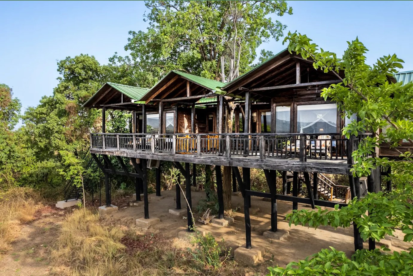 Every detail — from leather safari furnishings and linen upholstery to local art and wrought-iron Bastar elements — reflects regional character.