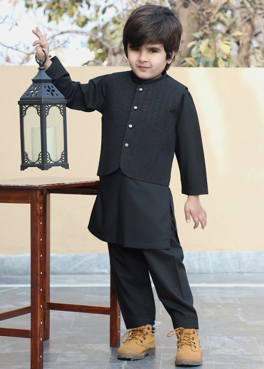 - Embroidered boys shalwar kameez for festive occasions