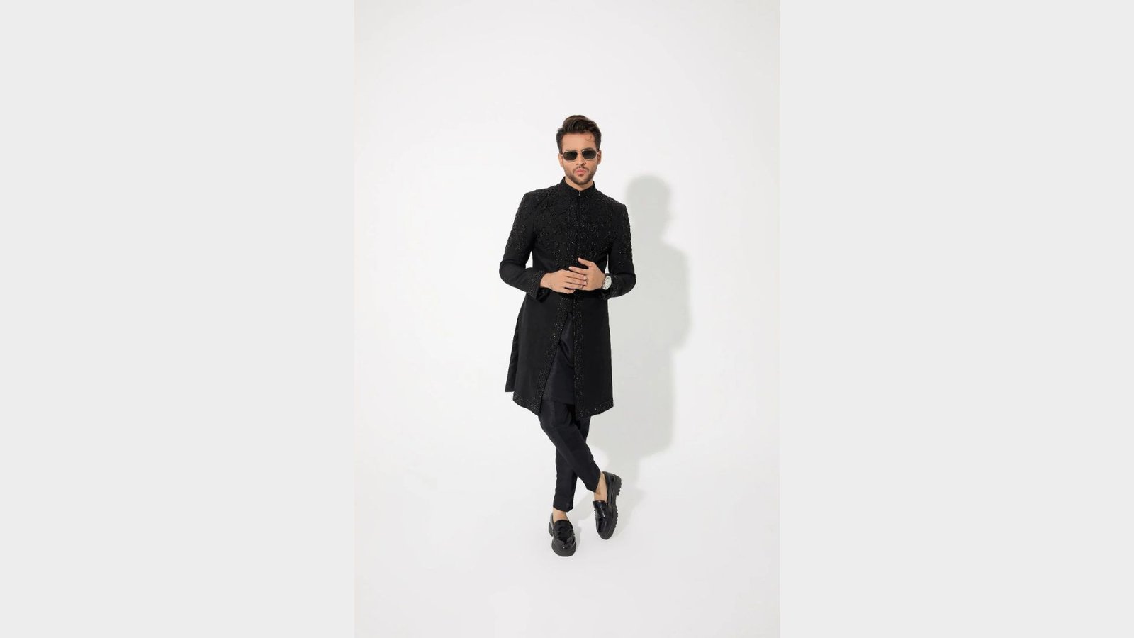 Even a simple black sherwani can look exceptional with the right detailing.