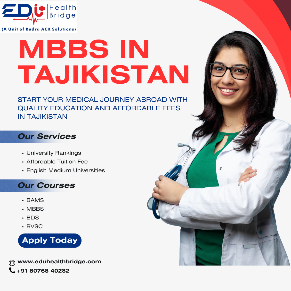 EduHealth Bridge is a consultancy that helps Indian students to study MBBS in Tajikistan. They offer the following services:
