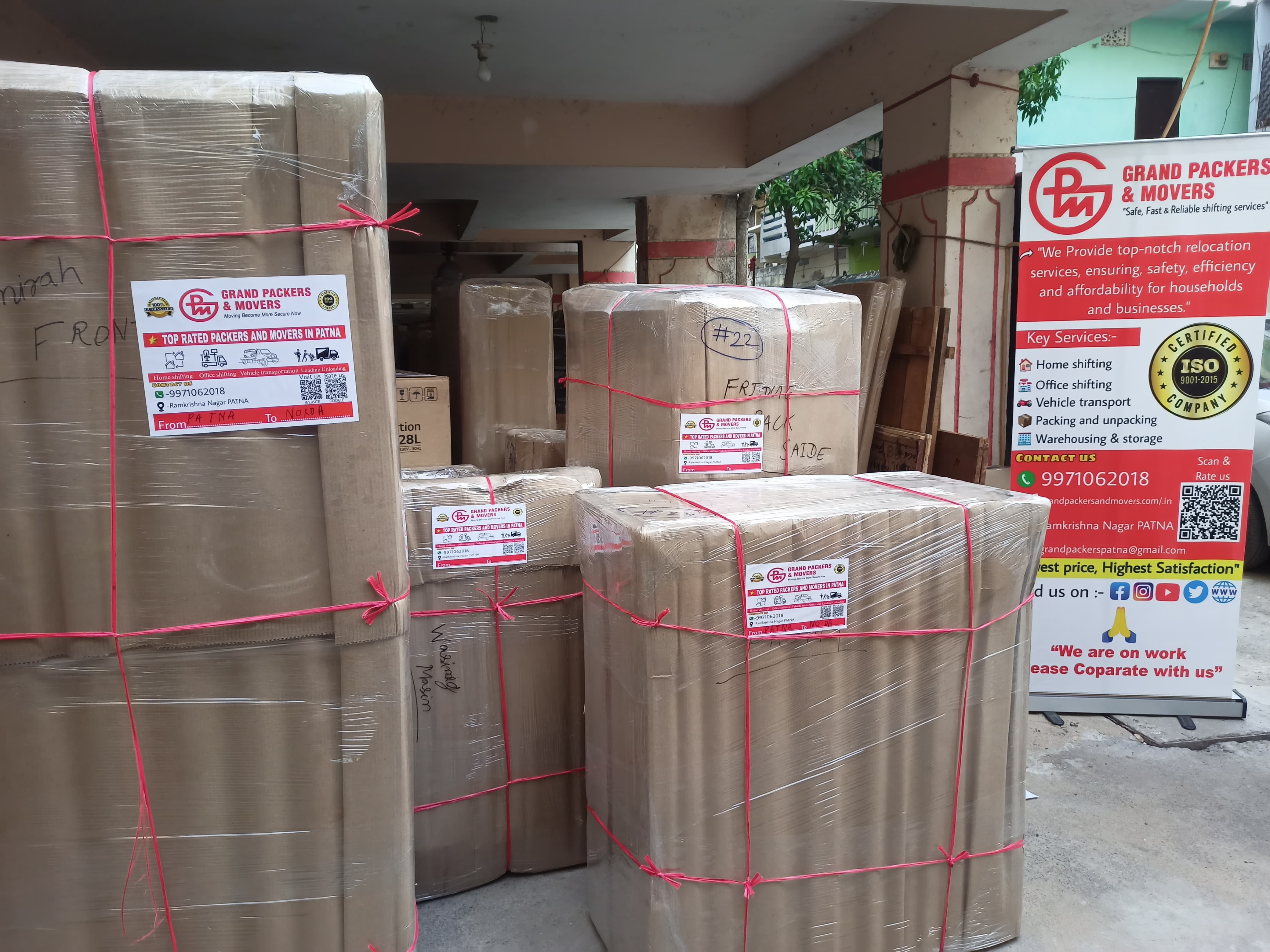 Ans. Grand Packers and Movers Logo Since 2014 Get a Quote WhatsApp Get Cost in Just 30 Mins! Call Call Us Now! We guarantee to beat any Genuine rate in Patna—Best Movers in Patna. Call Now- +91 9971062018 Phone Number Phone Number Patna Bihar From To To Moving Time Shifting Type Note: We as local packers and movers in Patna offer 100% best price with no hidden cost for packing material and labour. Best Packers and Movers in Patna Looking for the best packers and movers in Patna? We offer affordable services with a complete movers and packers Patna price list. Whether you need packers and movers in Hajipur, Gaya, or Muzaffarpur, we ensure safe shifting. Contact us now—packers and movers Patna contact number +91 9971062018 Patna Packers and Movers Finding reliable packers and movers in Patna can be overwhelming, but Grand Packers and Movers stands out as the city's trusted relocation partner. With over 10+ years of local expertise, we've successfully moved 5,000+ happy customers across Bihar and nationwide. Why Patna Residents Choose Us: Damage-Free Guarantee: Insurance-backed protection for all your belongings Patna-Local Experts: Specialized knowledge of city routes and housing societies 24/7 Support: Helpline +91 9971062018 available round-the-clock Affordable Shifting Packages: Customized, affordable relocation packages for Patna families & students - complete moving services at pocket-friendly prices with no hidden fees. Our trained team handles everything from delicate glassware to heavy furniture with patented packing techniques. We serve all Patna areas including Kankarbagh, Boring Road, Patliputra, and Danapur. Special Offer: Free pre-move survey + 15% off for first-time customers! See How We Work: Actual Home shifting project in Gandhi Maidan area Local Areas We Serve in Patna Kankarbagh Patliputra Colony Bailey Road Rajendra Nagar Ashok Nagar Boring Road Fraser Road Anisabad Danapur Gardanibagh Our Team Our Professional Services Expert solutions tailored to your business needs Home Shifting Services in Patna Home Shifting Services in Patna Moving homes in Patna? Our local movers provide complete packing and shifting services at reasonable rates. We carefully handle your furniture, appliances, and personal items with proper packing materials. Get a free quote today for your house relocation needs. Office Relocation in Patna Office Shifting Company in Patna Need to move your office in Patna? Our team specializes in corporate relocations with minimal disruption. We pack and transport computers, files, furniture and equipment safely. Weekend and after-hours shifts available for businesses. Car Transportation in Patna Car Transport Service in Patna Looking to move your car within Patna or to another city? Our covered carriers protect your vehicle from road dust and weather. Experienced drivers handle your car with care. Affordable rates for sedan, SUV and luxury car transportation. Bike Transport Services in Patna Bike Shifting in Patna Need to move your bike? We offer the most reliable motorcycle transportation in Patna. Our service includes proper tying, padding and insurance options. Available for local moves and long-distance bike shifting across Bihar. Complete Moving Services in Patna Door to Door Service Transportation From packing to setting up your new home, we handle everything. Our Patna movers provide boxes, packing material, loading, transport and unpacking services. Tell us what you need moved and we'll take care of the rest. Moving Insurance in Patna Insured Moving Services in Patna - Protect Your Belongings Worried about your items during the move? Our insured relocation services give you peace of mind. We offer different coverage options to protect your valuables during transit. All our packing and moving services come with damage protection. Working Process Our Simplified Shifting Process Transparent Pricing for Home, Office & Bike Transport Services Home Shifting Charges in Patna Vehicle Type Within Patna Patna to District Loading/Unloading Packing Charges Tata Ace (8 ft) ₹1,500 - ₹2,200 ₹15-₹20/km ₹300-₹500 ₹500-₹1,000 Pickup (10 ft) ₹2,000 - ₹3,000 ₹20-₹25/km ₹400-₹600 ₹700-₹1,200 Truck (14 ft) ₹3,500 - ₹5,000 ₹25-₹30/km ₹600-₹1,000 ₹1,000-₹2,000 Container (17 ft) ₹5,000 - ₹8,000 ₹35-₹40/km ₹1,000-₹1,500 ₹1,500-₹3,000 Note: Prices vary based on distance, floor level, and item quantity. Fragile items may incur additional charges. Minimum charges apply for all services. Office Shifting Charges in Patna Service Type Small Office (<500 sq ft) Medium Office (500-1500 sq ft) Large Office (>1500 sq ft) Additional Services Basic Shifting ₹8,000 - ₹15,000 ₹15,000 - ₹30,000 ₹30,000+ ₹500-₹1,500/item Full Service ₹12,000 - ₹20,000 ₹25,000 - ₹45,000 ₹45,000+ ₹1,000-₹2,000/item IT Equipment Handling ₹2,000 - ₹5,000 ₹5,000 - ₹12,000 ₹12,000+ ₹500-₹1,000/device Furniture Disassembly ₹1,500 - ₹3,000 ₹3,000 - ₹7,000 ₹7,000+ ₹200-₹500/item Note: Office shifting charges include packing, transportation, and unpacking. Specialized equipment handling and after-hours service available at 25% premium. Bike Transport Service Charges in Patna Bike Type Within Patna Bihar Districts Other States Insurance Scooter / Moped ₹400 - ₹600 ₹800 - ₹1,500 ₹1.5-₹2.5/km ₹200-₹300 Standard Bike (up to 150cc) ₹500 - ₹800 ₹1,000 - ₹2,000 ₹2.0-₹3.0/km ₹300-₹500 Premium Bike (150-350cc) ₹800 - ₹1,200 ₹1,500 - ₹3,000 ₹3.5-₹5.0/km ₹500-₹800 Heavy Bikes (350cc+) ₹1,200 - ₹2,000 ₹2,500 - ₹5,000 ₹5.0-₹7.0/km ₹800-₹1,500 Note: Prices include door-to-door service. Discounts available for multiple bikes. Minimum charge for all services is ₹400. Delivery time: 3-10 days depending on distance. Aim and Mission of Grand Packers and Movers in Patna – Your Trusted Home Shifting & Relocation Experts Since 2014 For over 10 years, Gra