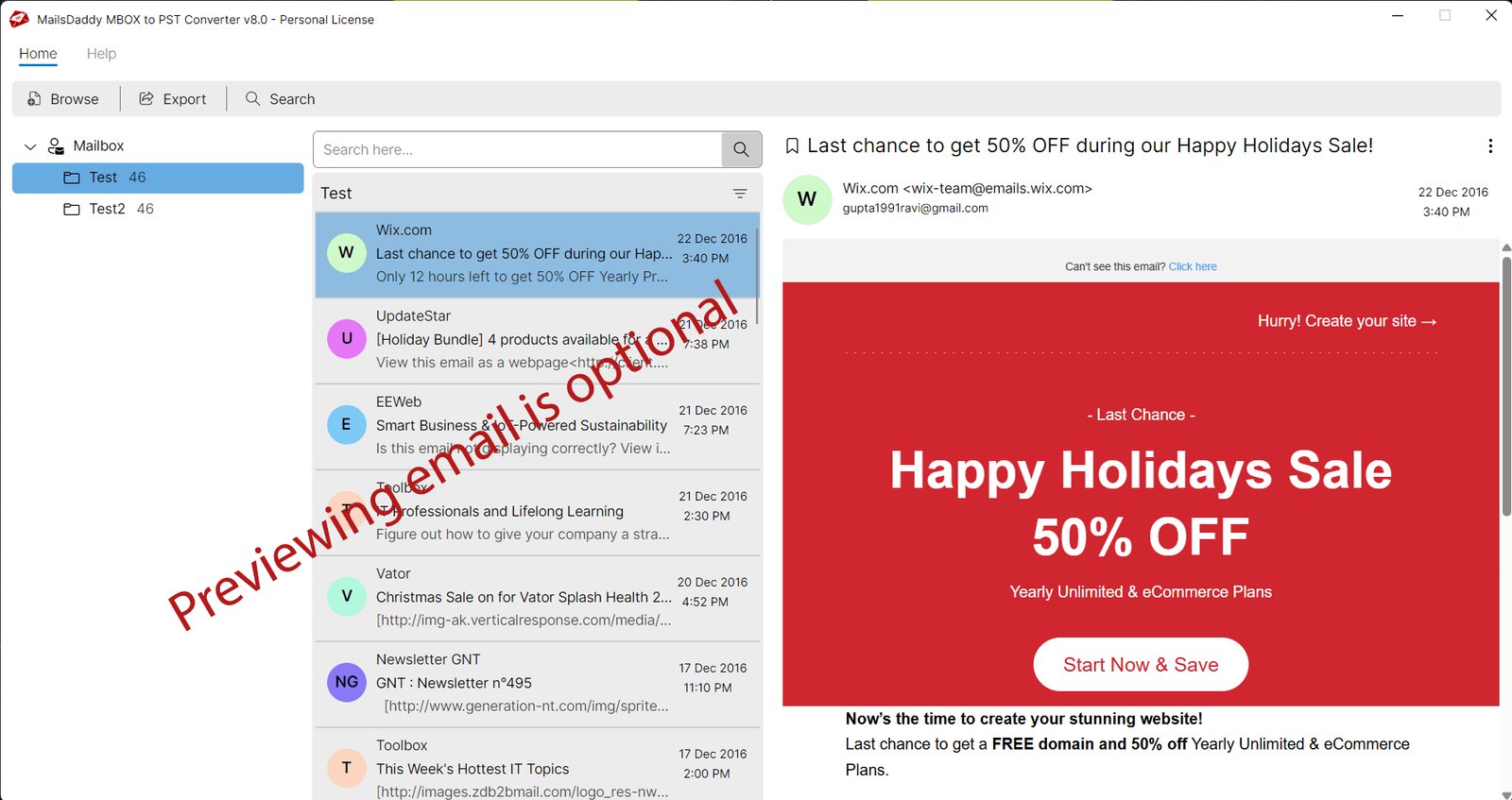 • Convert MBOX to PST, Office 365, EML, MSG, Live Exchange