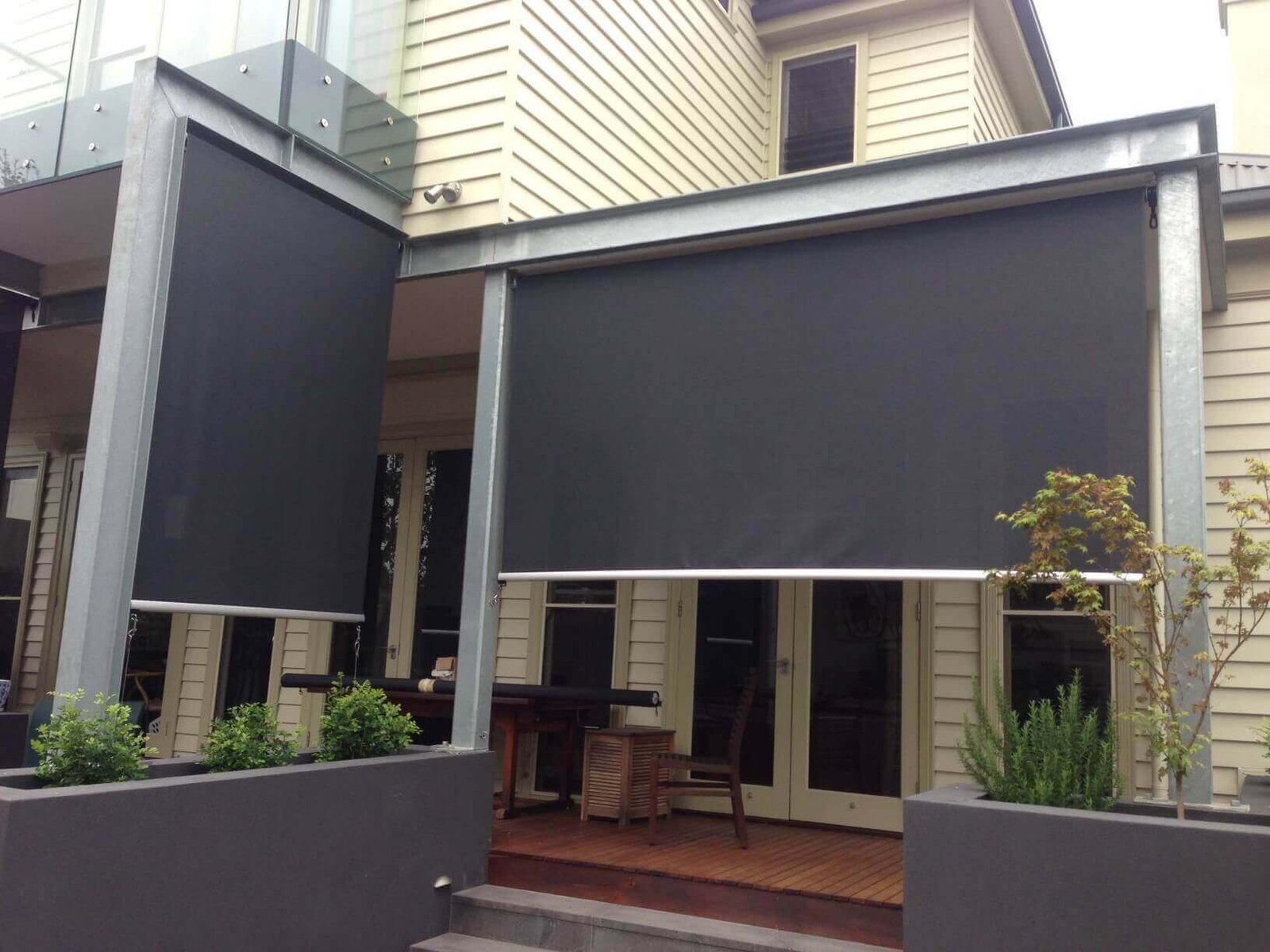 Custom retractable awnings suitable for balconies, patios, courtyards, pergolas, and open entertaining spaces.